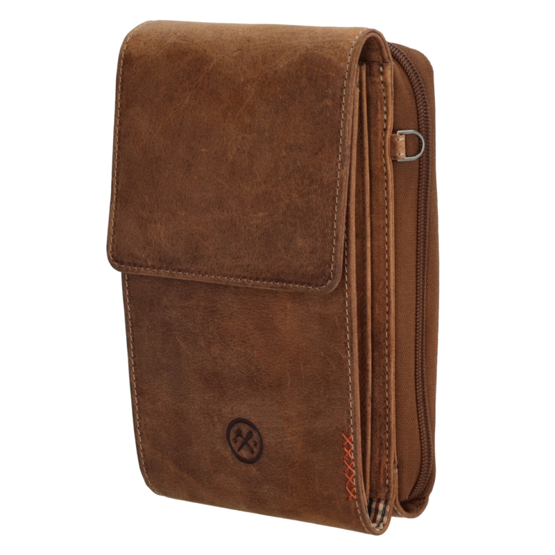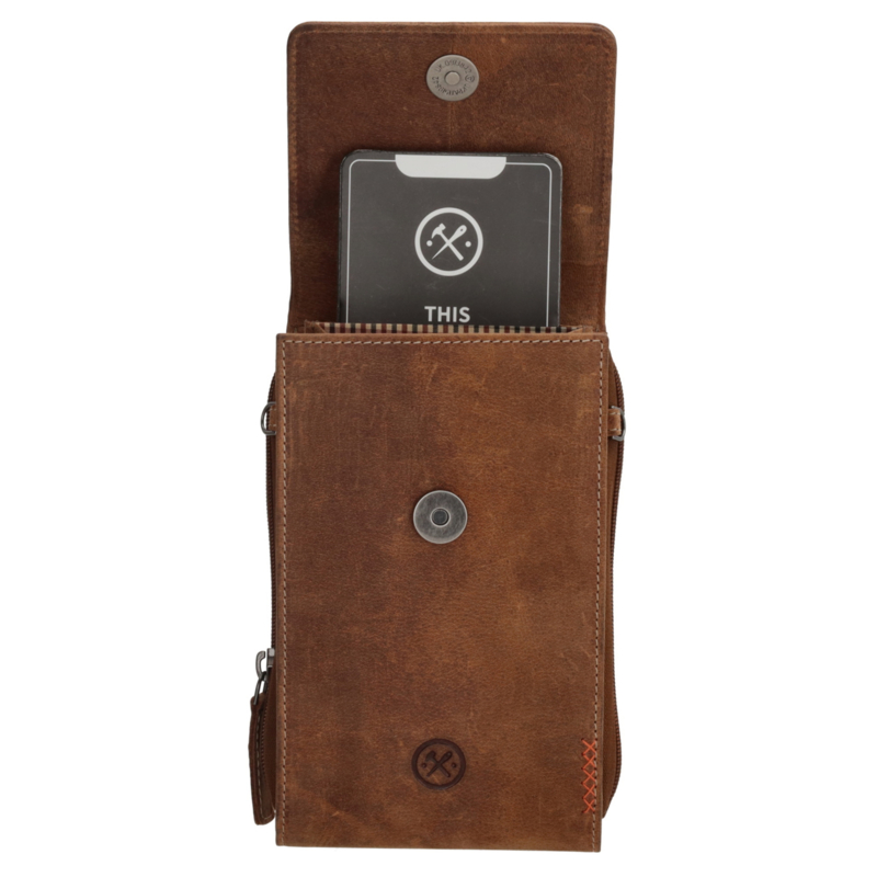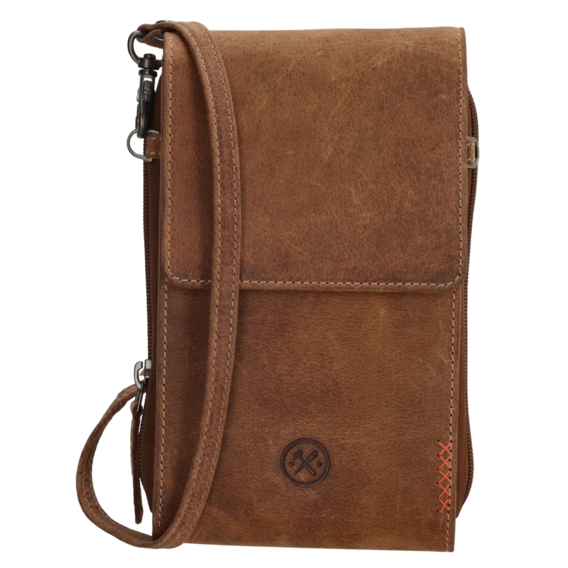 Dit cognackleurige telefoontasje is ideaal in het dagelijkse gebruik. Hij is afkomstig uit de Idaho collectie van Hide & Stitches. Je draagt hem aan de verstelbare en afneembare schouderband. Het tasje sluit met een overslag en in het hoofdvak past jouw telefoon. Daarnaast is er nog een vakje voor wat kleine dingetjes.De afmeting van het tasje is 20 cm x 11 cm.