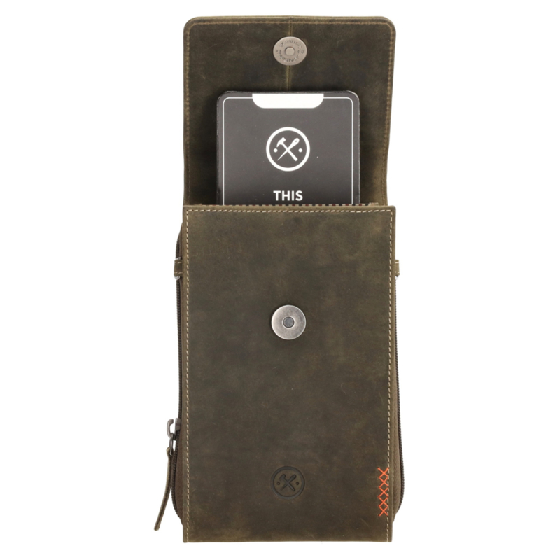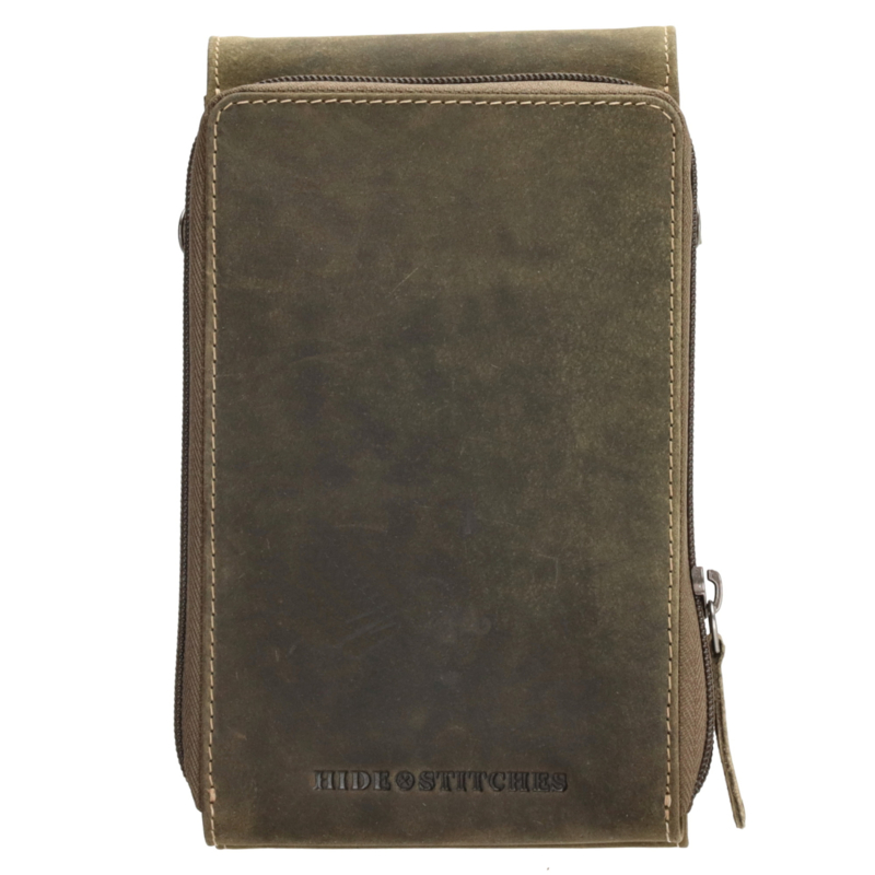 Dit olijfkleurige telefoontasje is ideaal in het dagelijkse gebruik. Hij is afkomstig uit de Idaho collectie van Hide & Stitches. Je draagt hem aan de verstelbare en afneembare schouderband. Het tasje sluit met een overslag en in het hoofdvak past jouw telefoon. Daarnaast is er nog een vakje voor wat kleine dingetjes.De afmeting van het tasje is 20 cm x 11 cm.