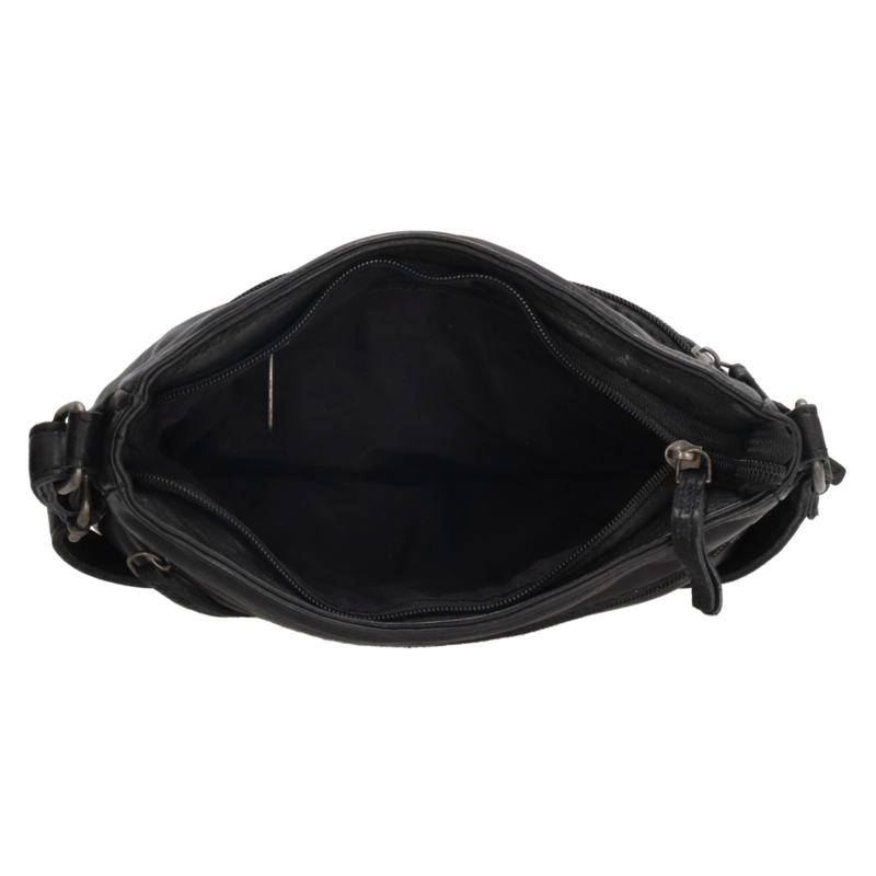 Zwarte Schoudertas van Hide & Stiches in prachtige soepel leer.Je draagt hem aan de verstelbare schouderband, zo kun je de tas dragen op jouw hoogte. De tas heeft een hoofdvak die sluit met een rits. Daarnaast een rits aan de voor en achterkant en van binnen ook nog een rits. De tas is 23 cm breed en 16,5 cm hoog!