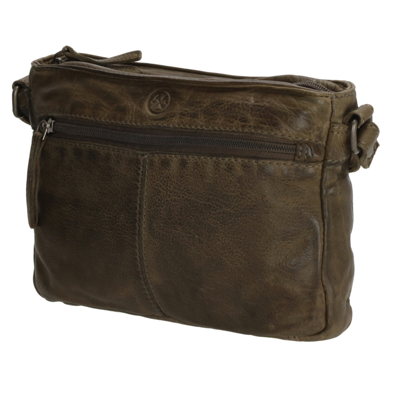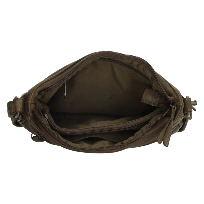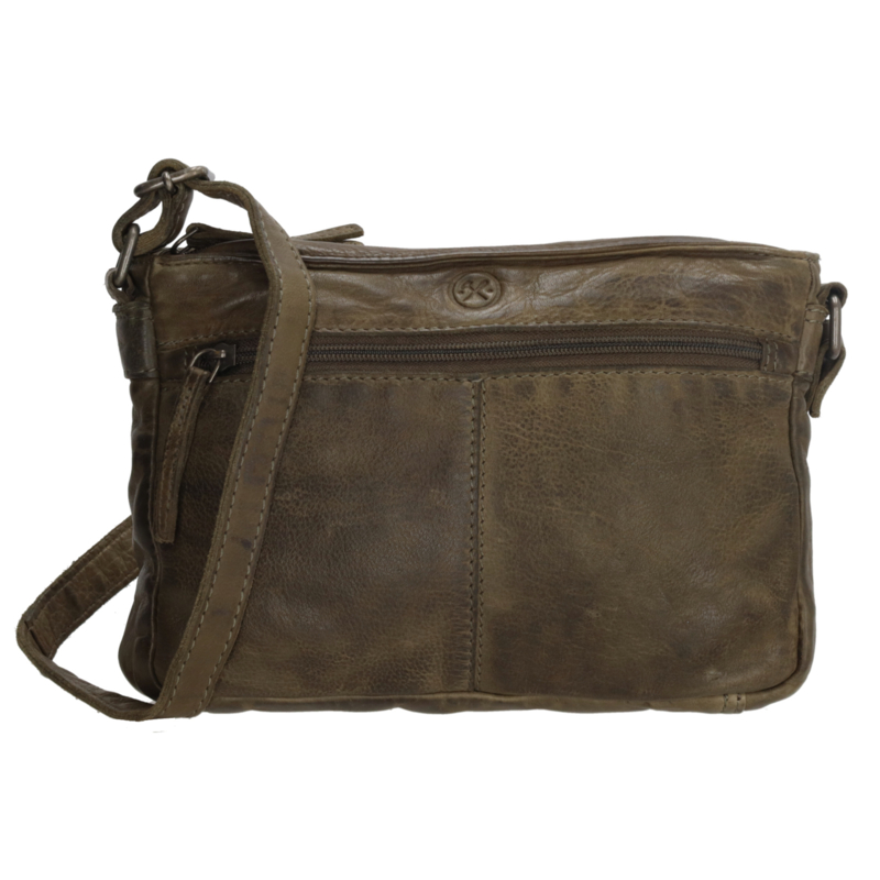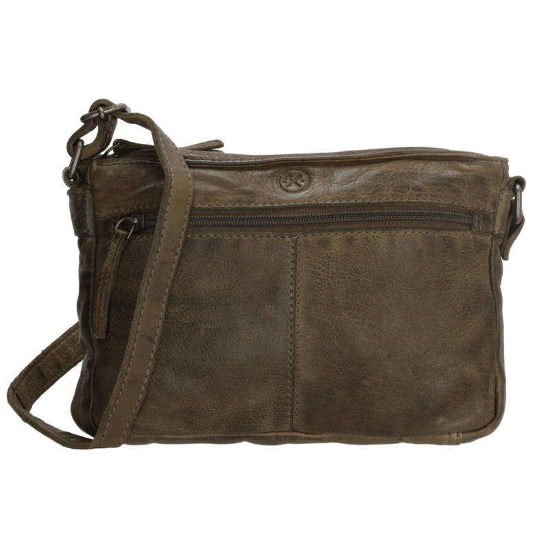 Olijf kleurige Schoudertas van Hide & Stiches in prachtige soepel leer.Je draagt hem aan de verstelbare schouderband, zo kun je de tas dragen op jouw hoogte. De tas heeft een hoofdvak die sluit met een rits. Daarnaast een rits aan de voor en achterkant en van binnen ook nog een rits. De tas is 23 cm breed en 16,5 cm hoog!