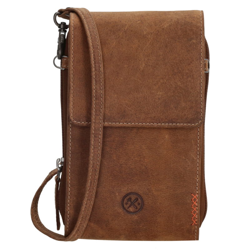 LEREN TASJEDit cognackleurige telefoontasje is ideaal in het dagelijkse gebruik. Hij is afkomstig uit de Idaho collectie van Hide & Stitches. Je draagt hem aan de verstelbare en afneembare schouderband. Het tasje sluit met een overslag en in…
