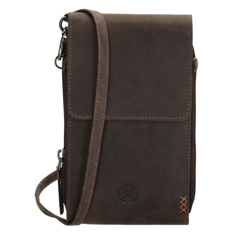 LEREN TASJEDit donkerbruine telefoontasje is ideaal in het dagelijkse gebruik. Hij is afkomstig uit de Idaho collectie van Hide & Stitches. Je draagt hem aan de verstelbare en afneembare schouderband. Het tasje sluit met een overslag en in…