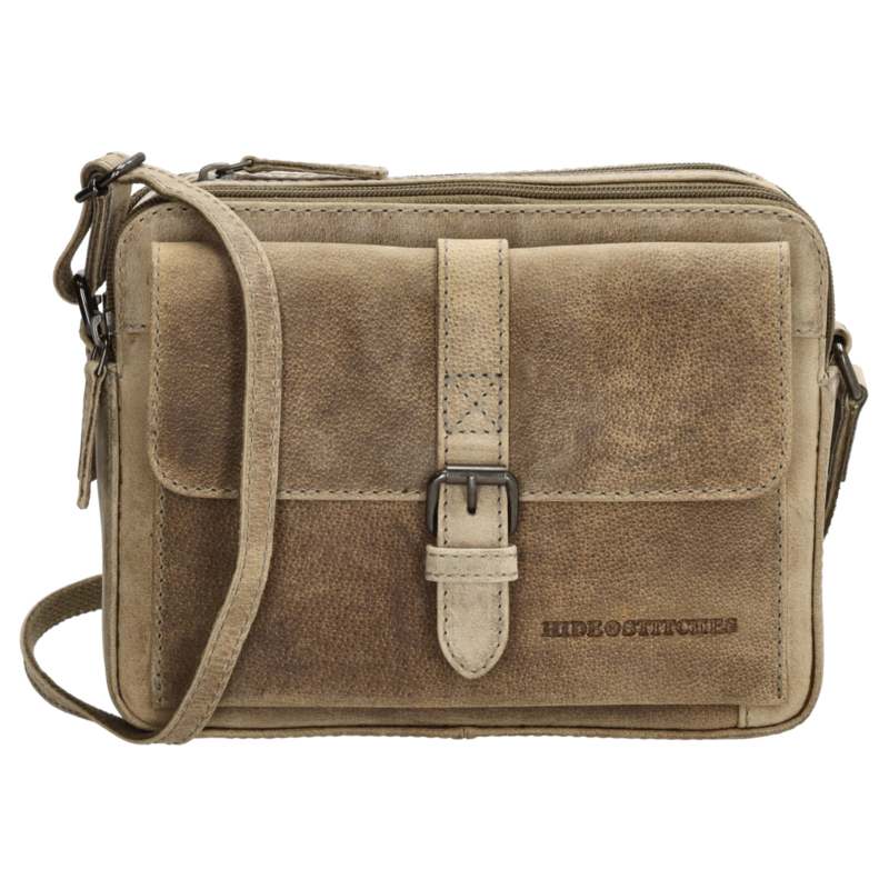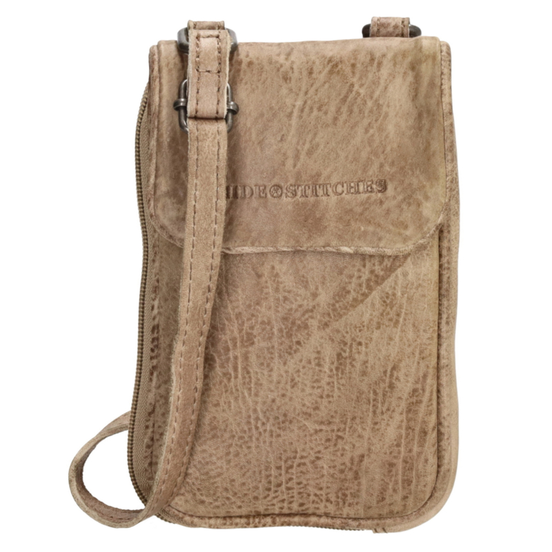 LEREN TASJEDit zandkleurige telefoontasje is ideaal in het dagelijkse gebruik. Hij is afkomstig uit de Idaho collectie van Hide & Stitches. Je draagt hem aan de verstelbare en afneembare schouderband. Het tasje sluit met een overslag en in…