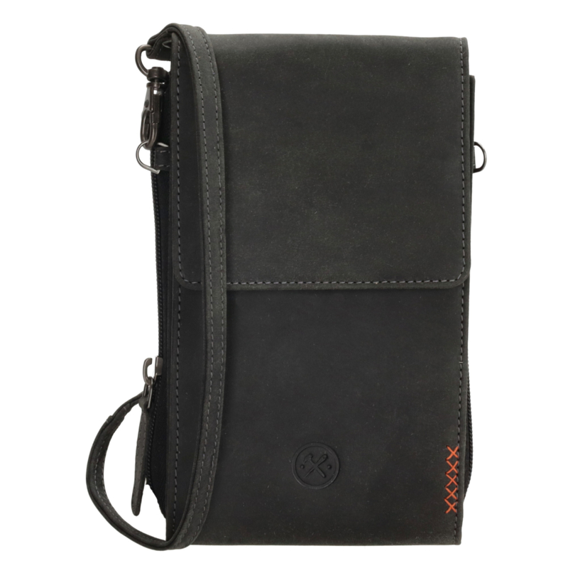 LEREN TASJEDit zwarte telefoontasje is ideaal in het dagelijkse gebruik. Hij is afkomstig uit de Idaho collectie van Hide & Stitches. Je draagt hem aan de verstelbare en afneembare schouderband. Het tasje sluit met een overslag en in het…