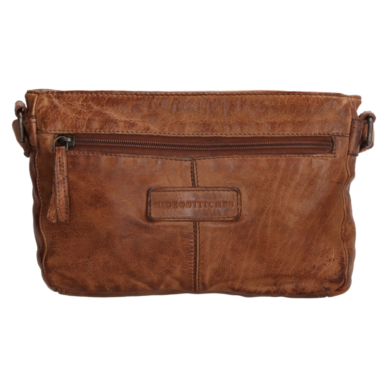LEREN TASJECognac Schoudertas van Hide & Stiches in prachtige soepel leer.Je draagt hem aan de verstelbare schouderband, zo kun je de tas dragen op jouw hoogte. De tas heeft een hoofdvak die sluit met een rits. Daarnaast een rits aan de voor…